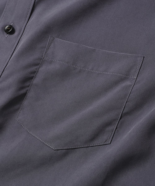 綺麗なシルエットとレギュラーカラー、胸ポケット、ミニマムなデザインにする事でカジュアルから綺麗目まで幅広く合わせる事が可能。