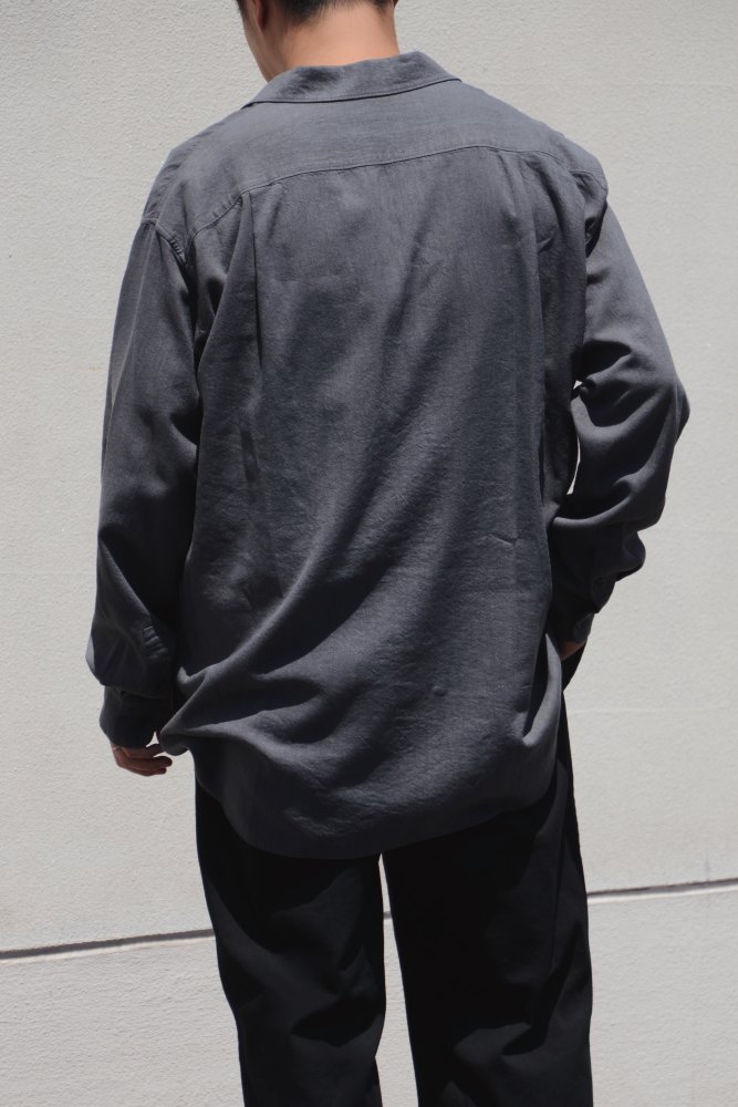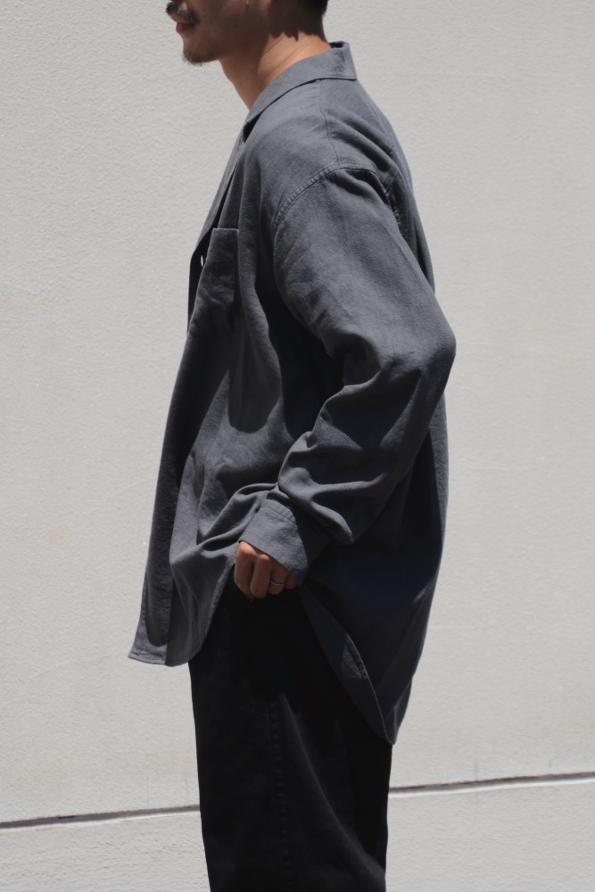 OPENOFFICER STAND COLLAR L/S SHIRT LINEN CANVAS (GRAY) NN-S4805