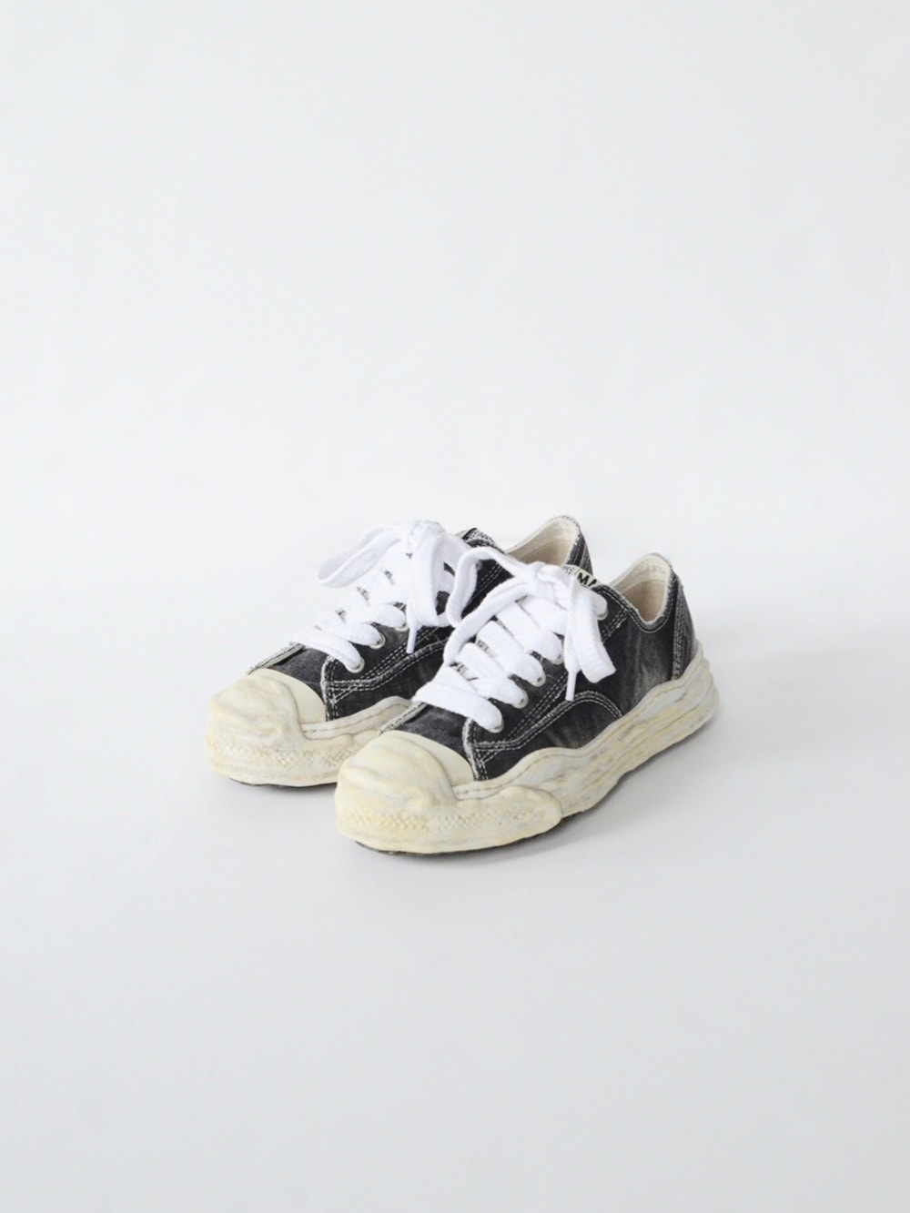 "HANK" OG Sole Bleach-Wash Denim Canvas Low-top Sneaker (BLACK)