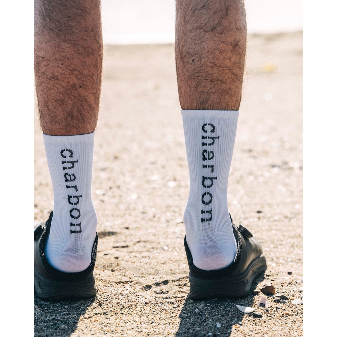 ・ミドル丈の着圧リブ部分に、バイカラーのブランドロゴをジャカード編みで施しました。