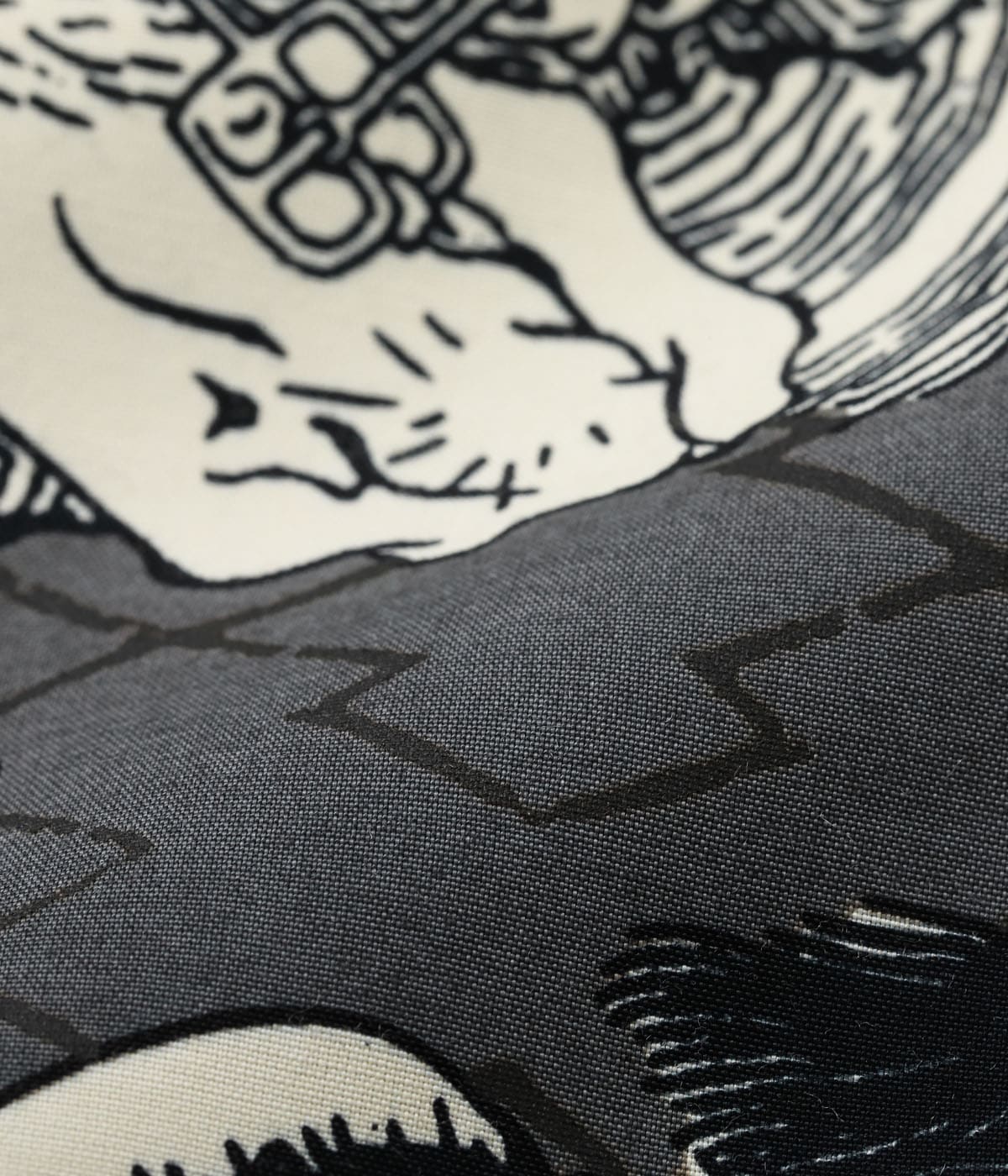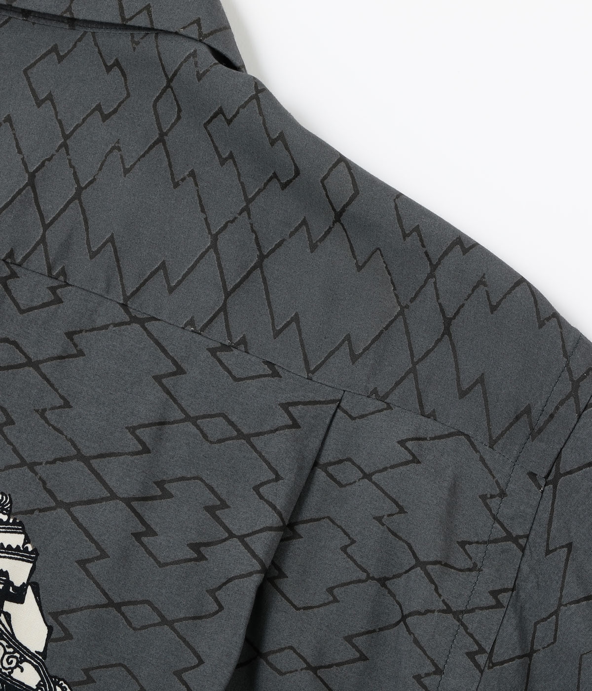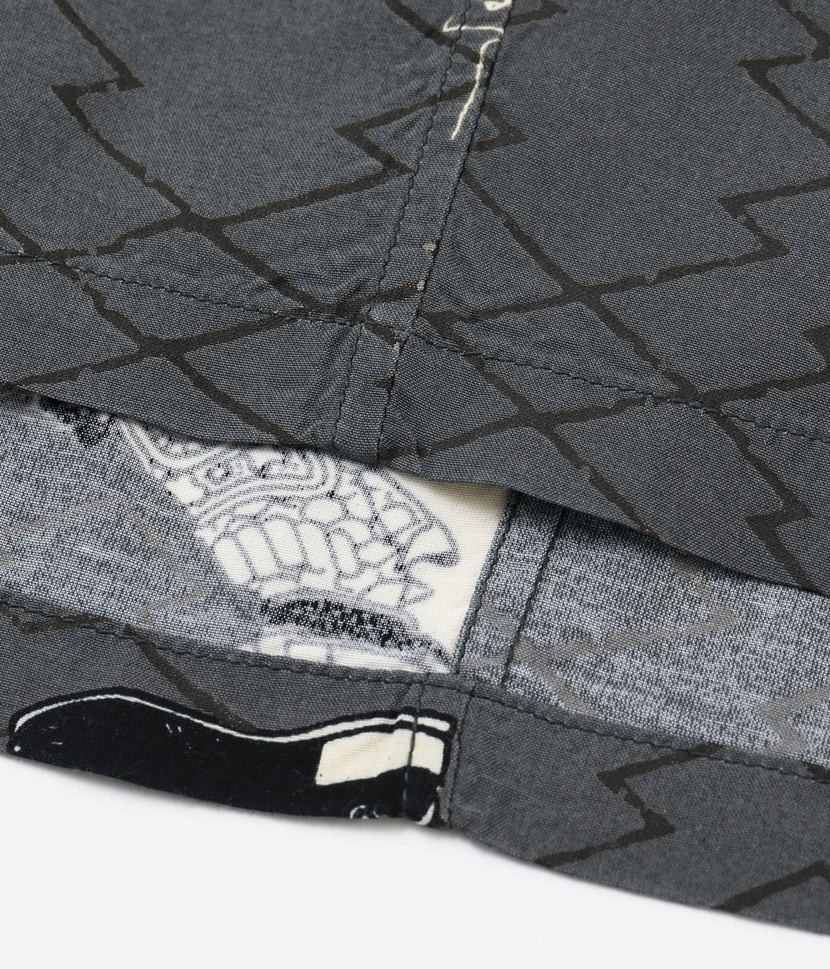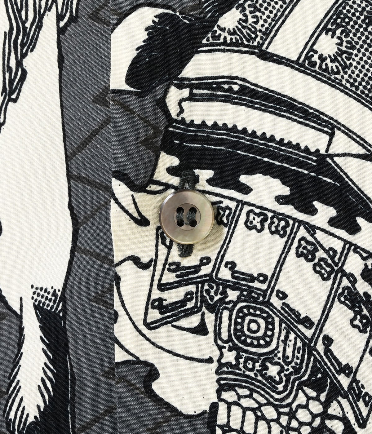 素材: レーヨンフジエット プリント: オーバープリント(墨顔料) ボタン: 黒蝶貝ボタン