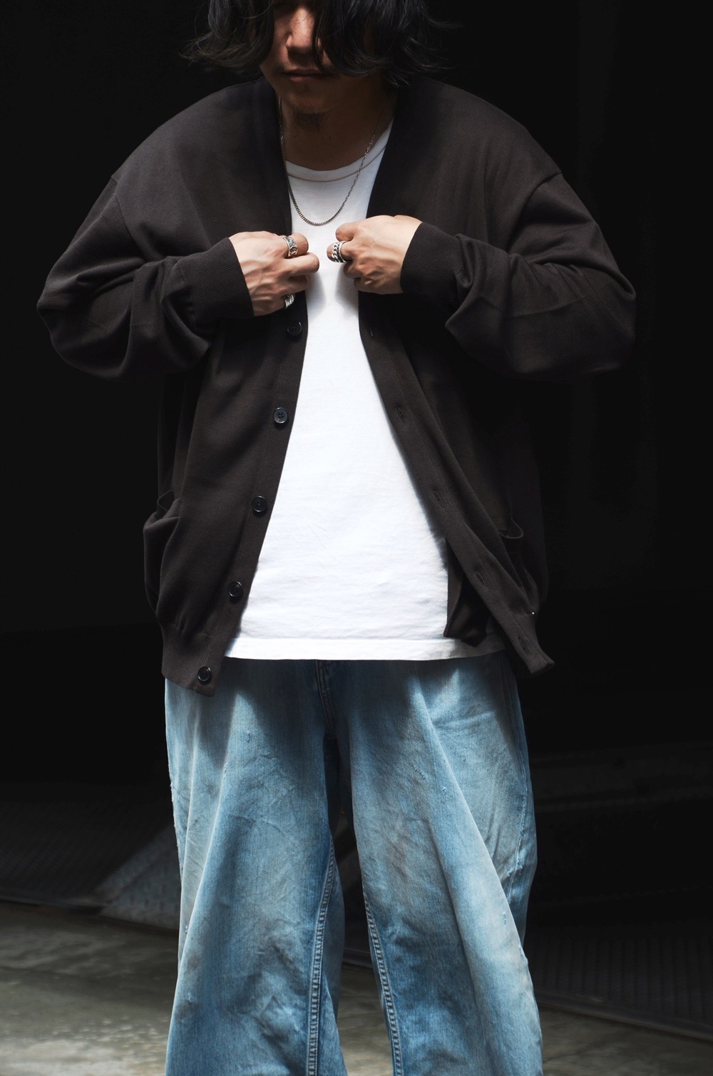 LACED KNIT CARDIGAN (BLACK) ANC-KN25