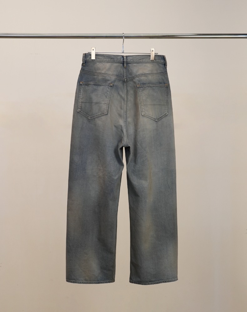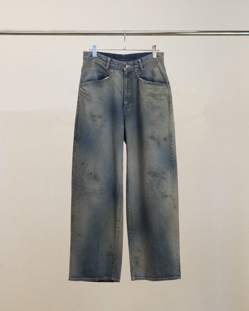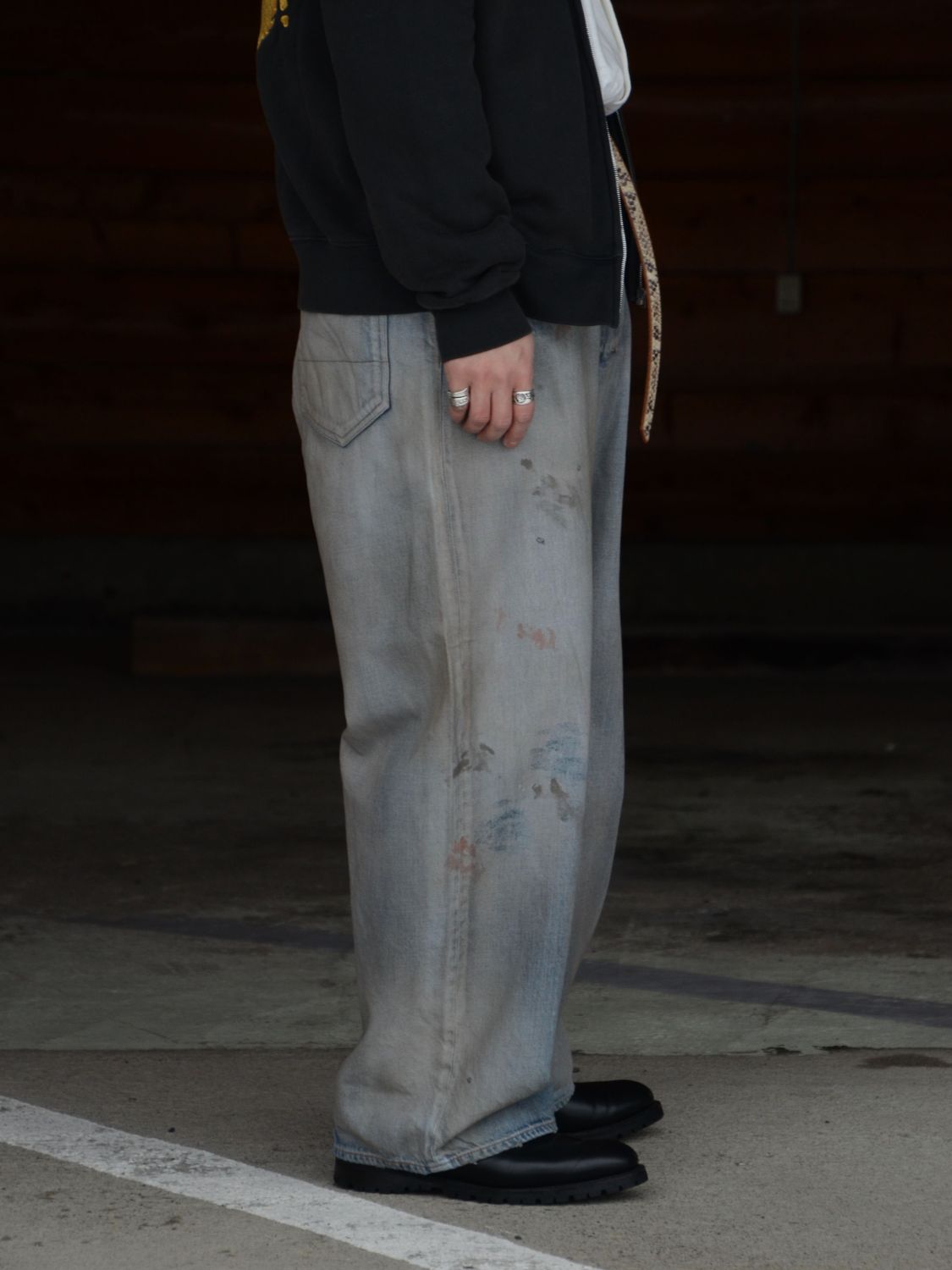 大きく生地分量を持たせたワイドさに、裾に向かって美しく落ちる#05。大胆で迫力のある太さで主張しながら、着用時にはとても綺麗な収まりを見せ立体感の美しいシルエットとなっております。