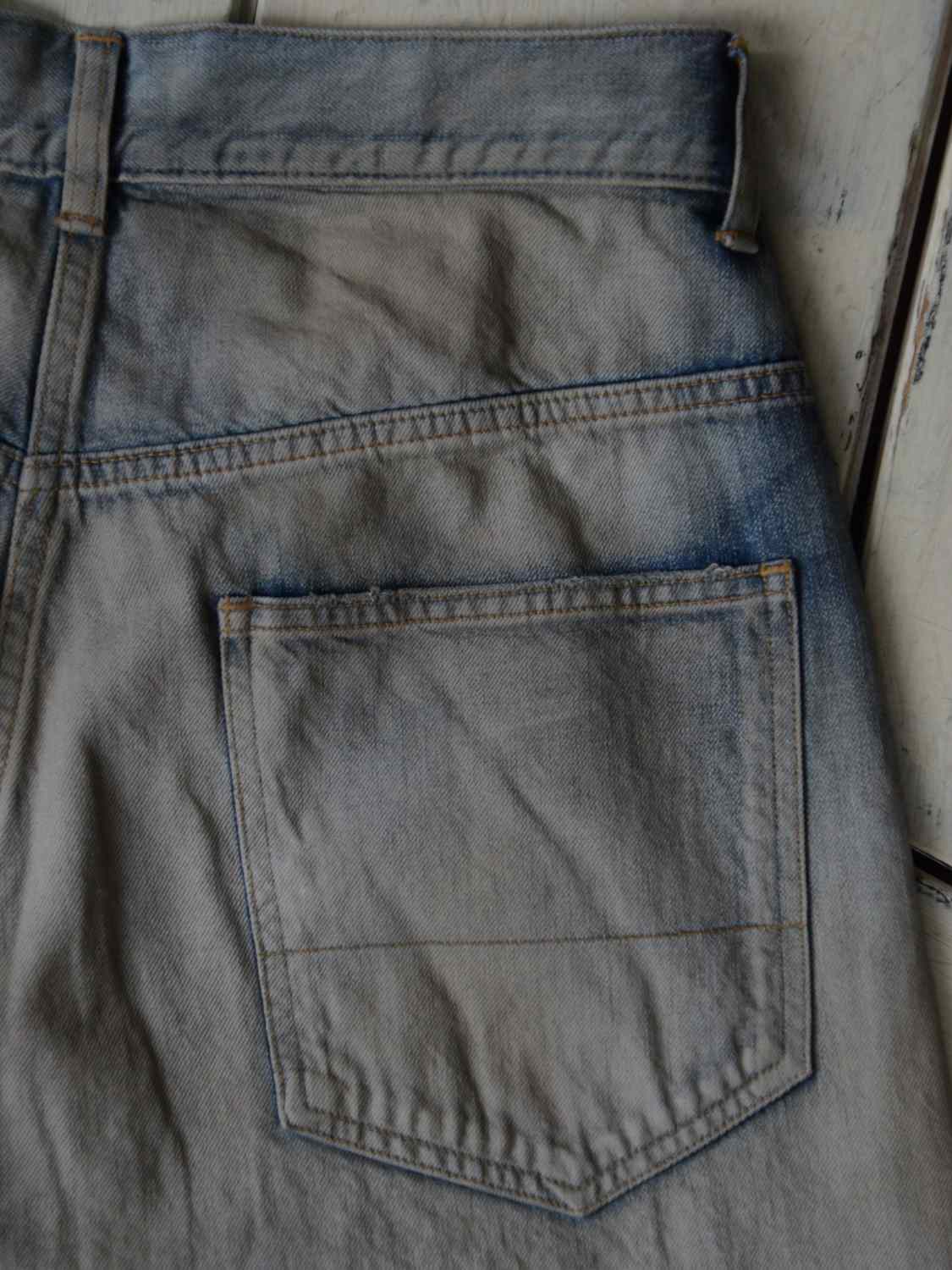 熟練の職人が一本一本に手作業で加工を施し小さなダメージの一つ一つまでバランスを調整。WHITEでは白に白を重ねることで奥行のある表情を生み出し、INDIGOとBLACKでは、色を落として設定したベースカラーに対し、淡色・中色・濃色、それぞれのレイヤーで色気を整えるよう独自調合の色を載せることでブランドの象徴となるムードを生み出しました。