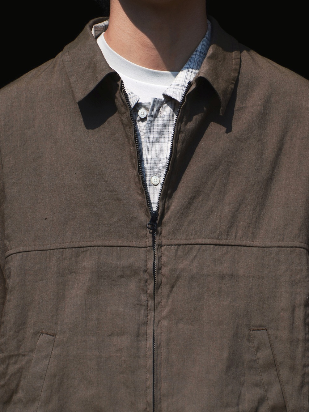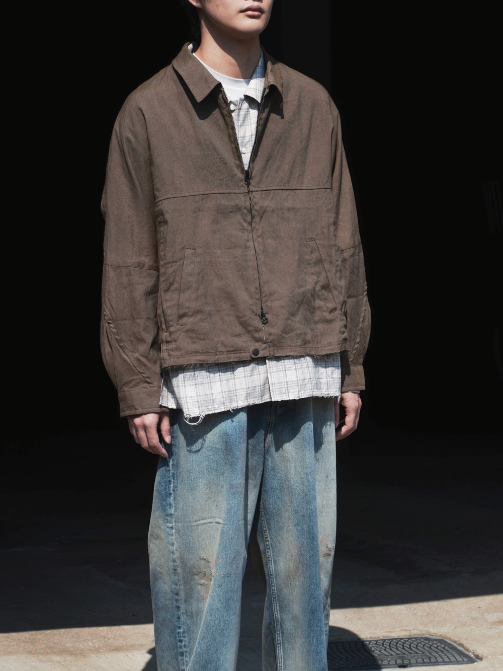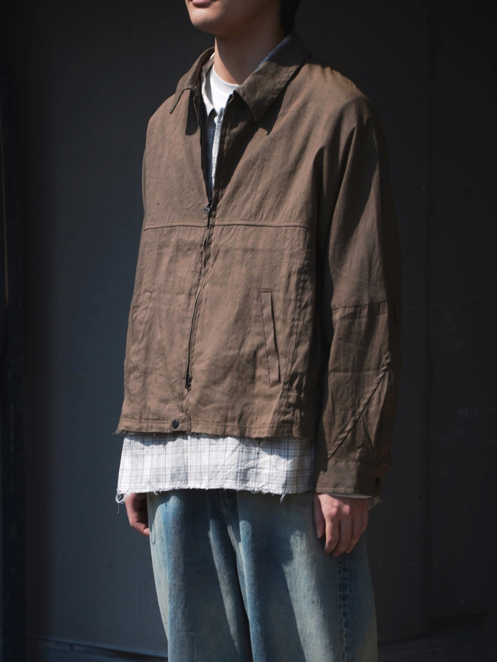 OFFICER STAND COLLAR L/S SHIRT COTTON TWILL OMBRE CHECK by Rafu (BEIGE) NN-S4806