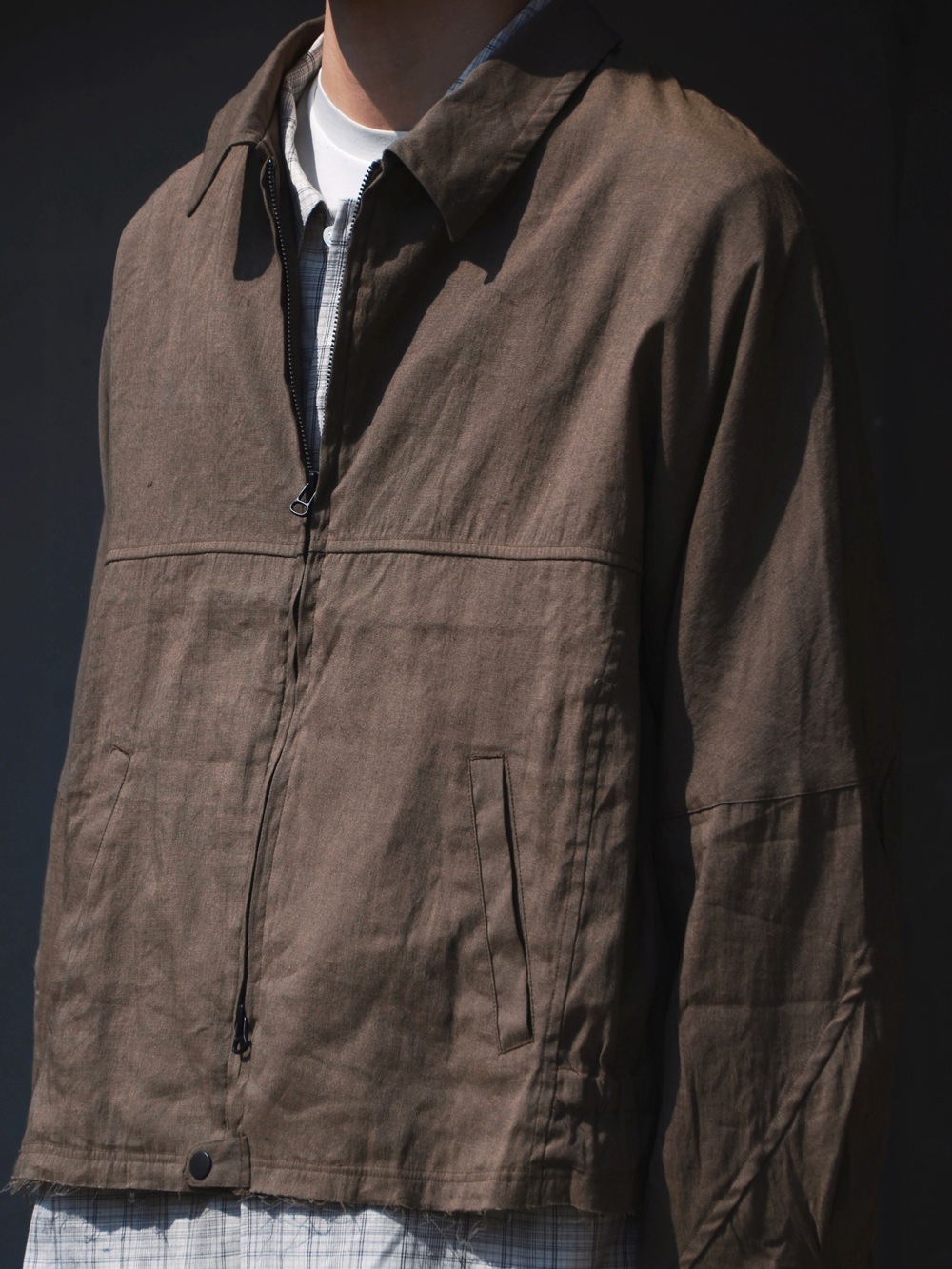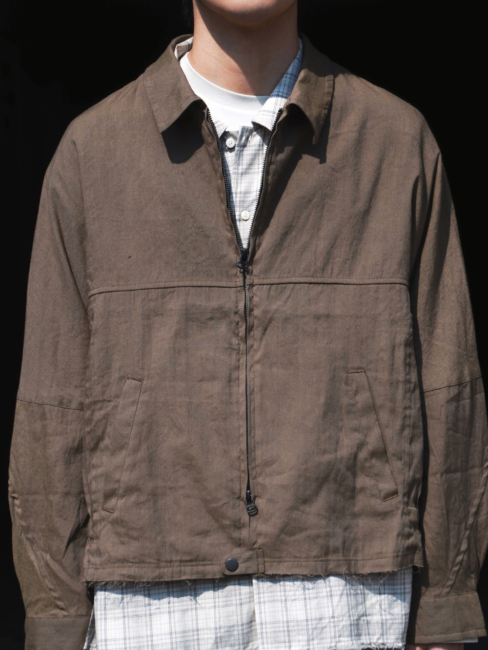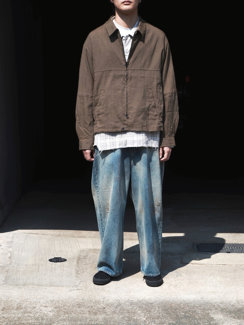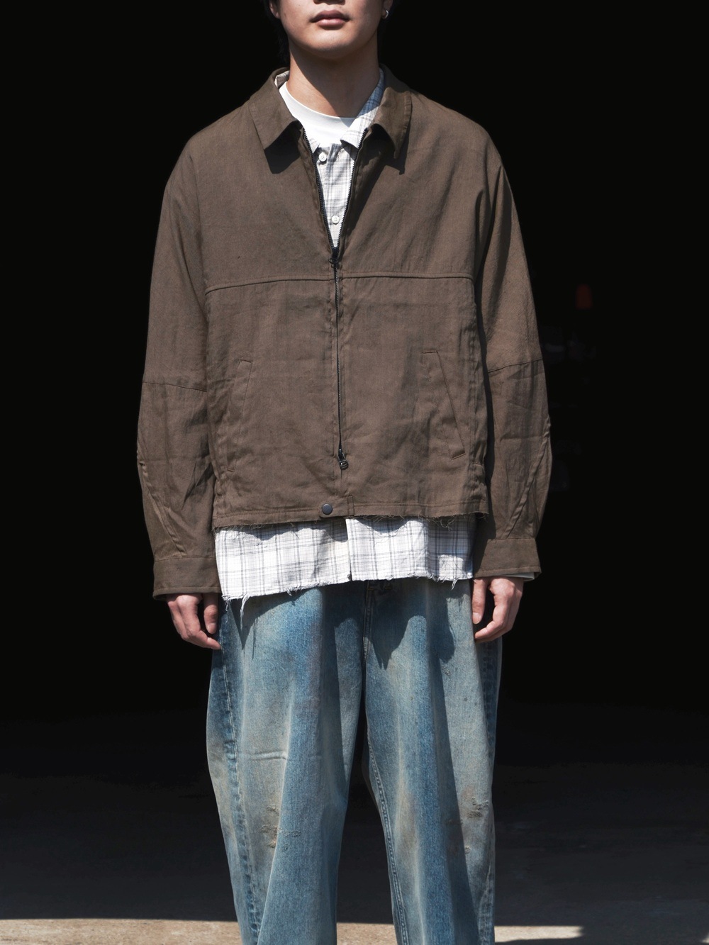 OFFICER STAND COLLAR L/S SHIRT COTTON TWILL OMBRE CHECK by Rafu (BEIGE) NN-S4806