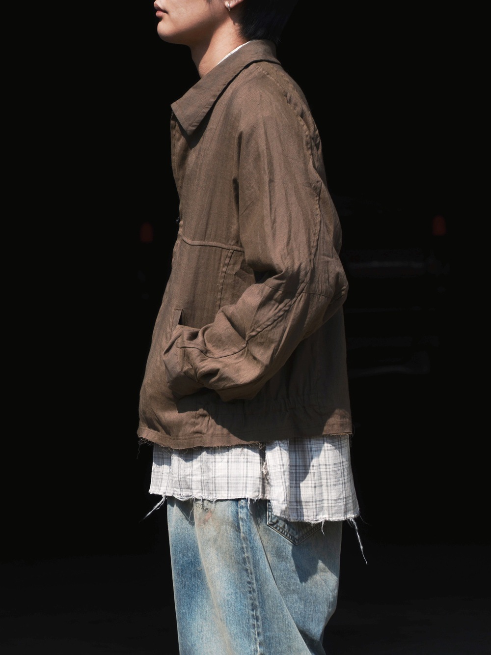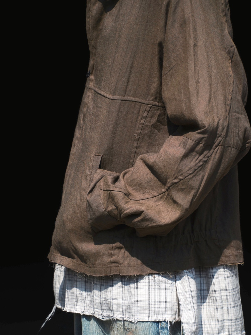TROOPER SHIRT JACKET COTTON TWILL OMBRE CHECK by Rafu (GRAY) NN-SJ4802