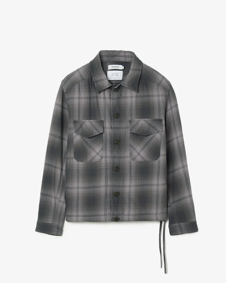 TROOPER SHIRT JACKET COTTON TWILL OMBRE CHECK by Rafu (GRAY) NN-SJ4802