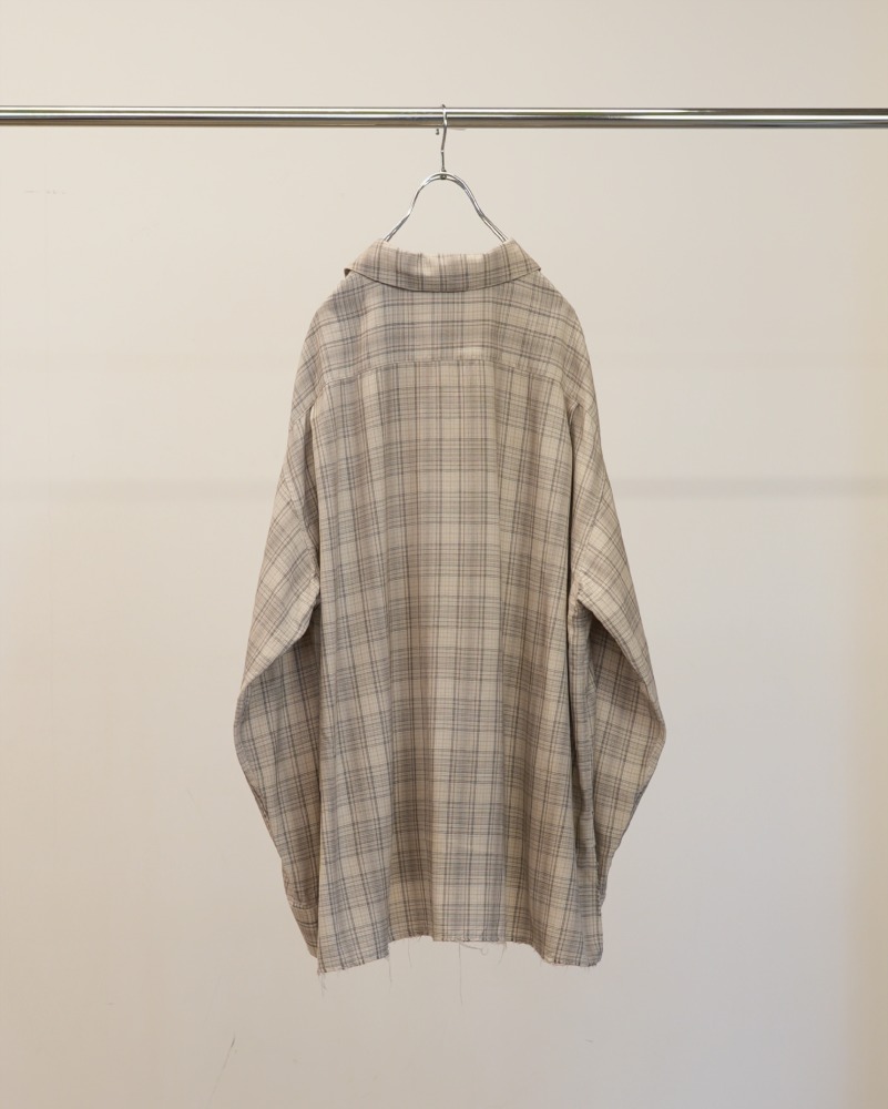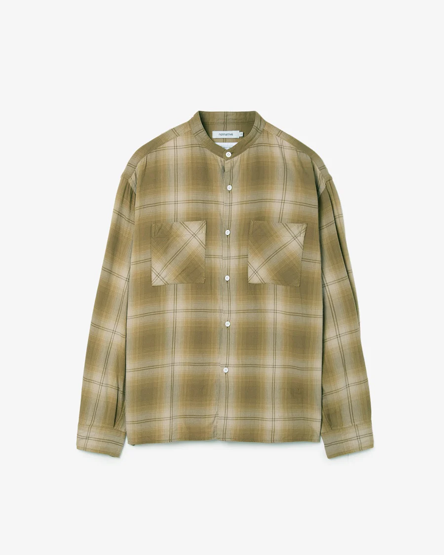 OFFICER STAND COLLAR L/S SHIRT COTTON TWILL OMBRE CHECK by Rafu (BEIGE) NN-S4806