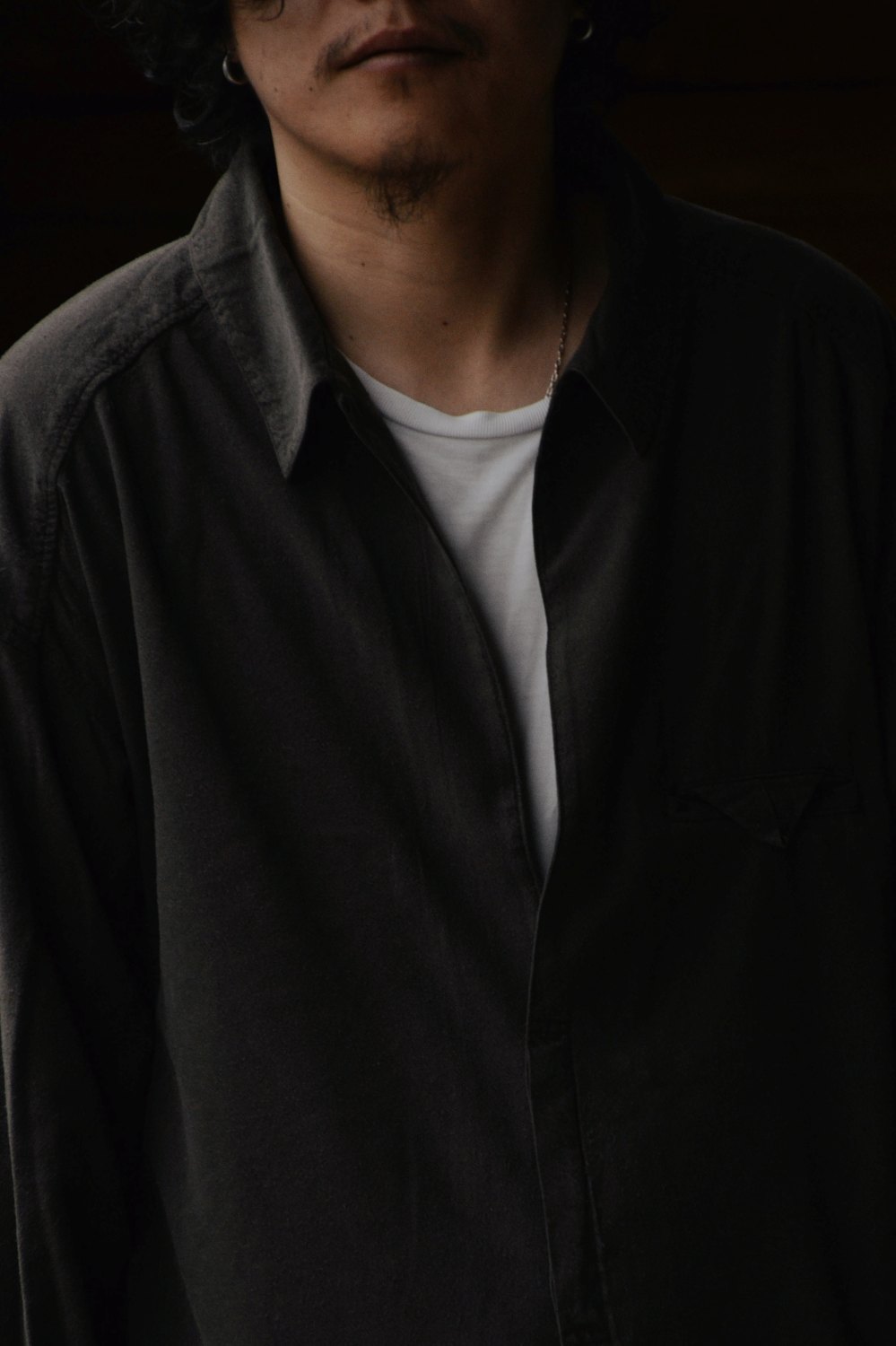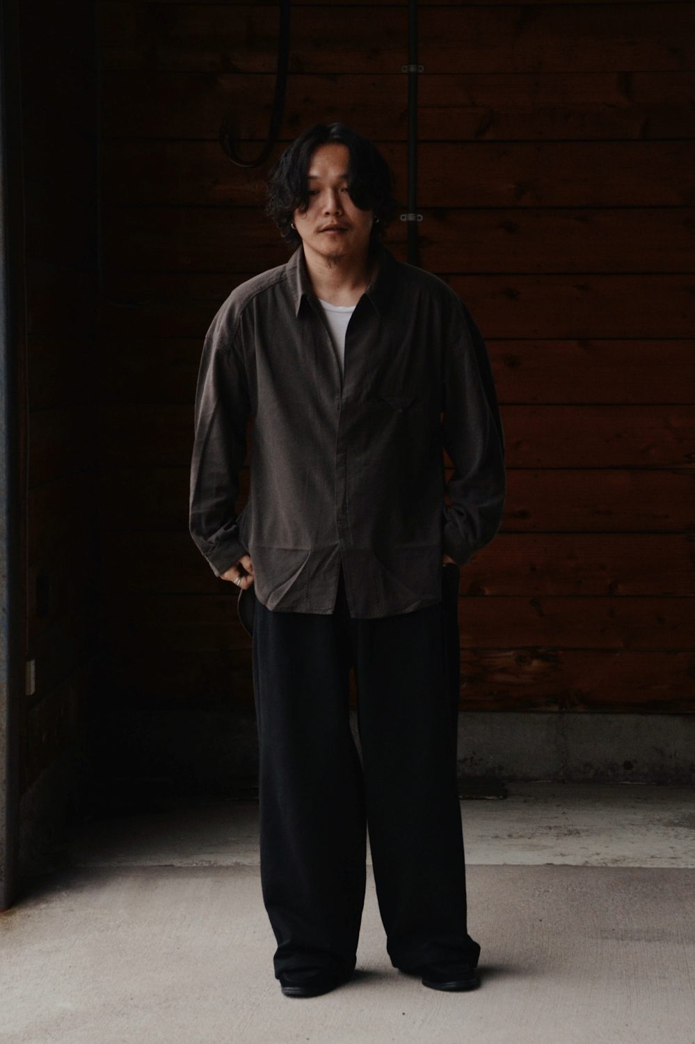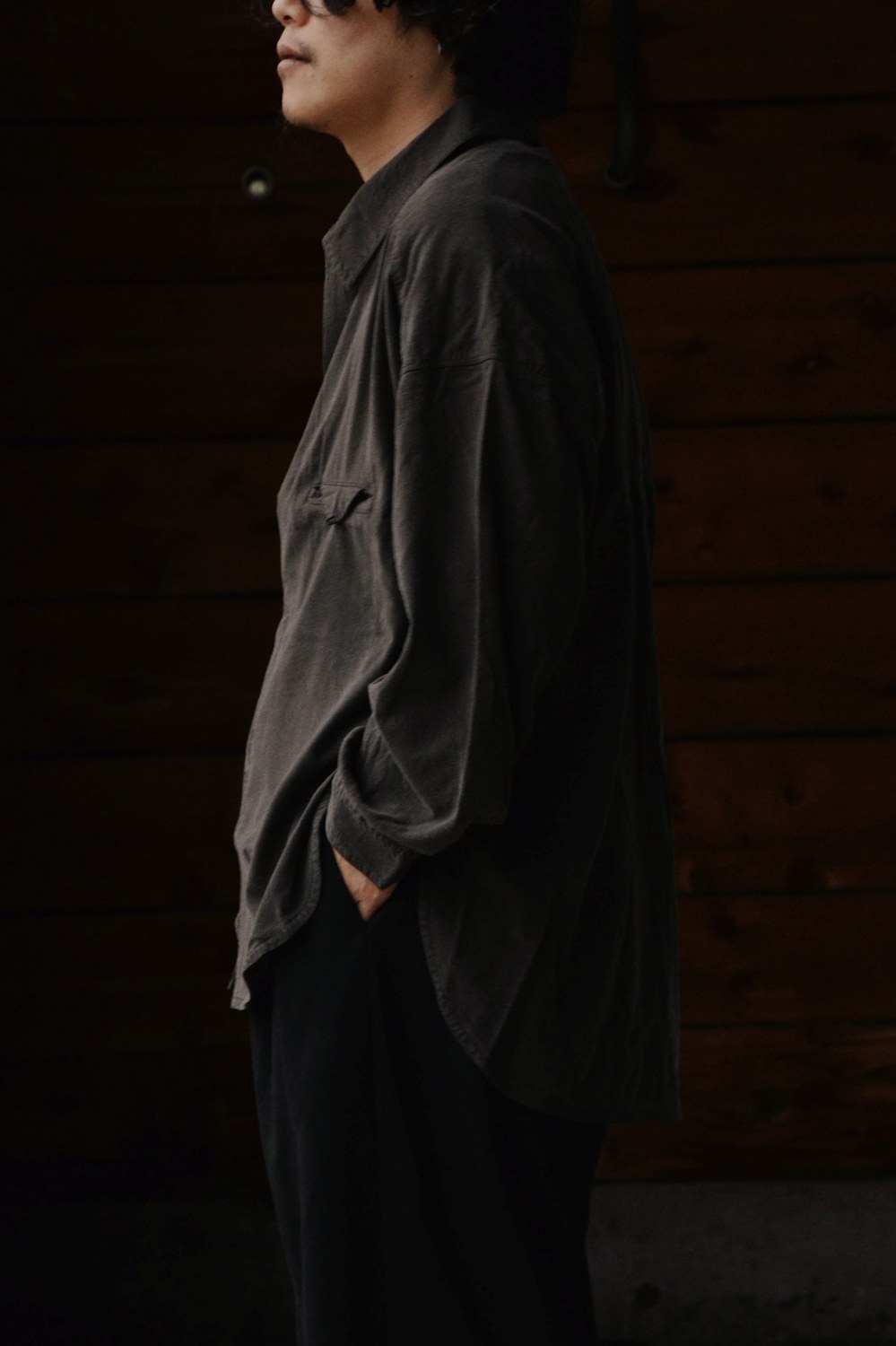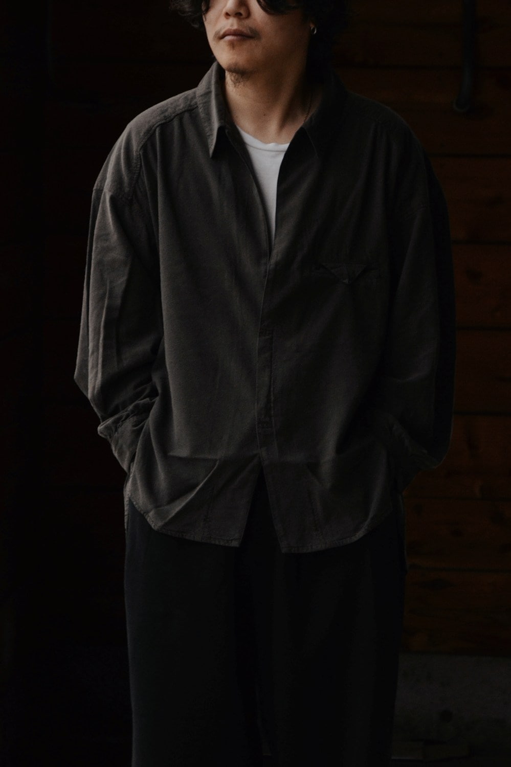 Modal Double Pocket Open Collar Shirt (CHARCOAL) YK26SS01215SH