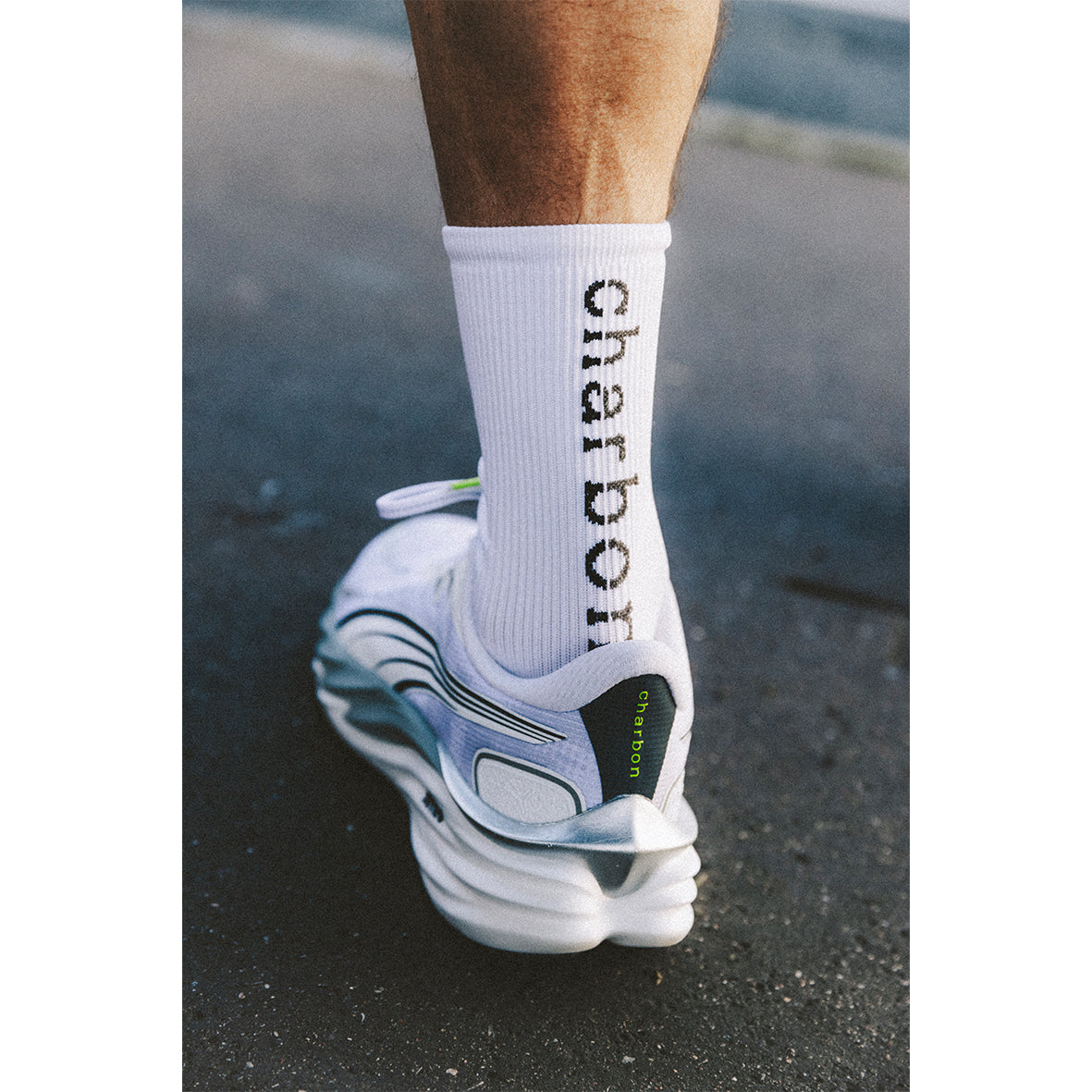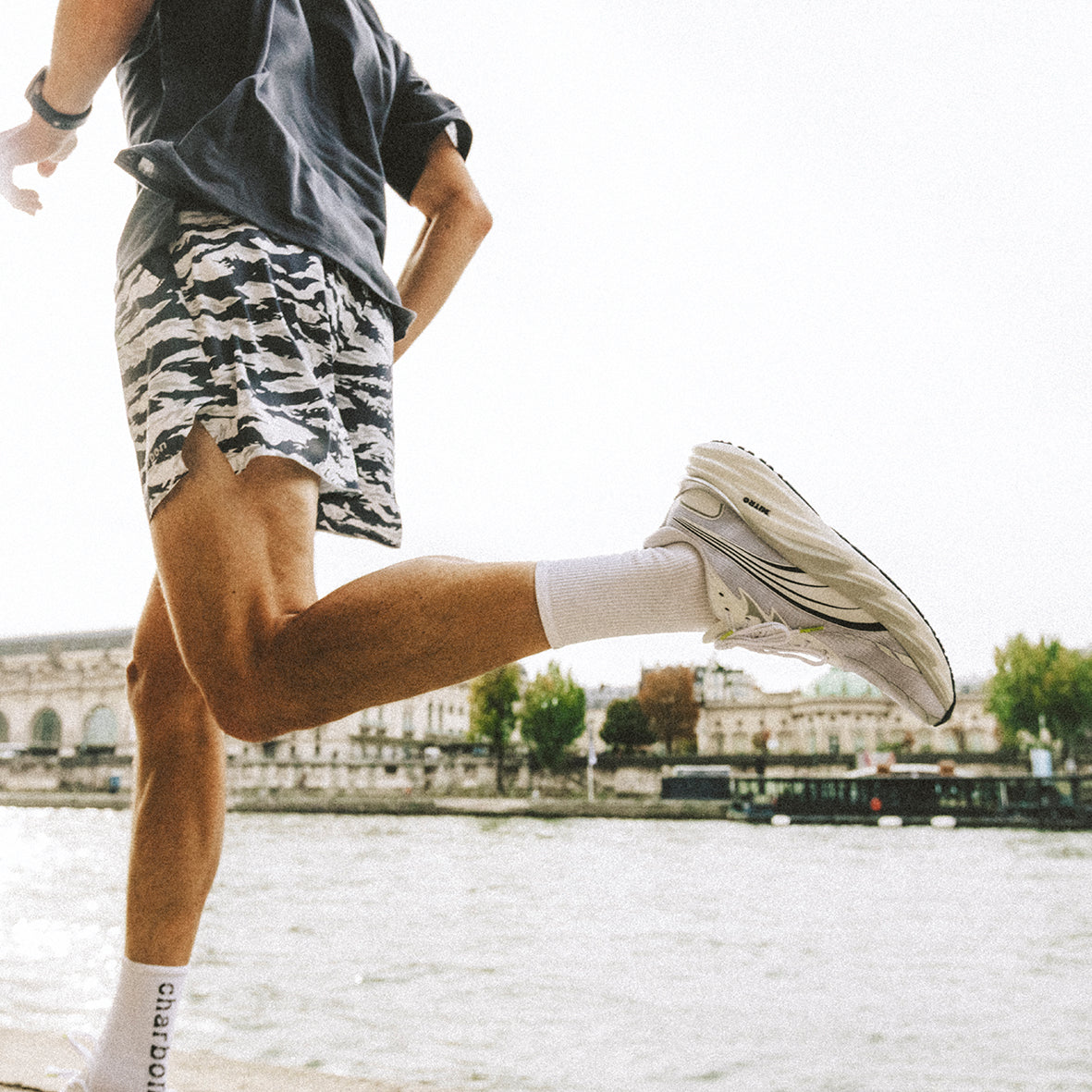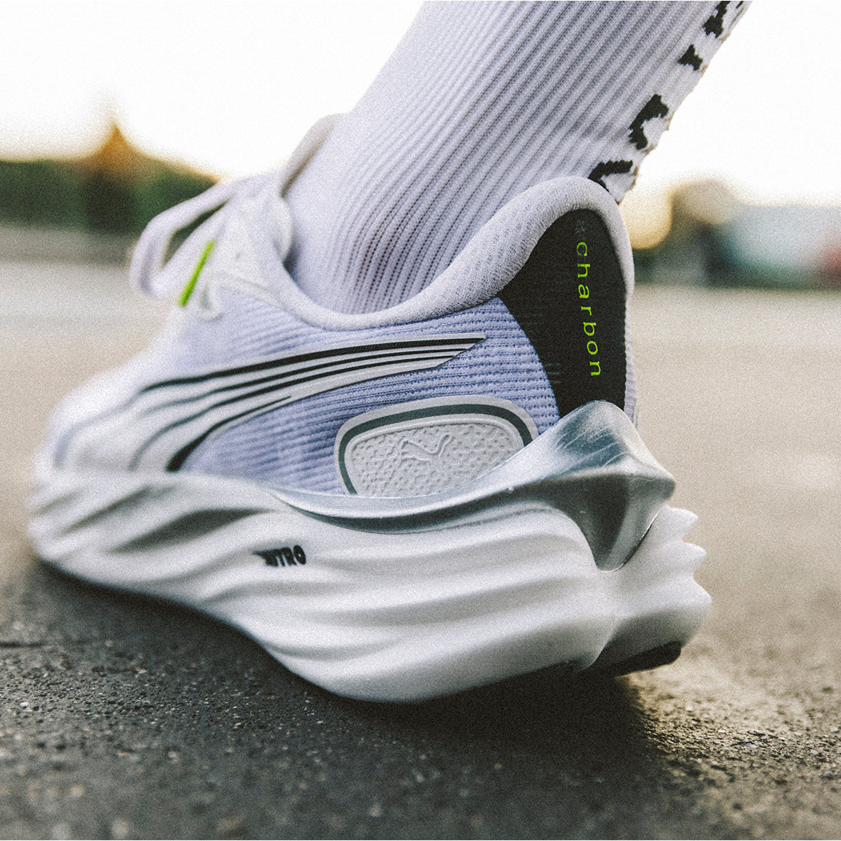 PUMAが培ってきたランニングテクノロジーを、charbonの美学を通して表現し、走るための機能性と、日常に溶け込む佇まいを両立させました。