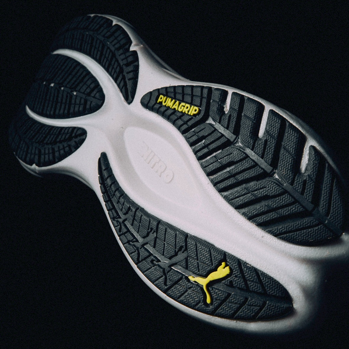 アウトソールにはPUMAGRIPを使用し、濡れた路面や不整地でも優れたグリップ力を発揮します。